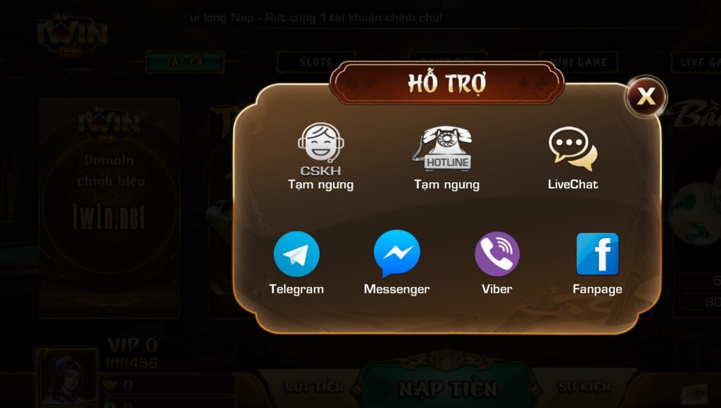 - Bước 4: Chọn phương thức Telegram và sử dụng @Cskh_iWinClub để gửi tin nhắn